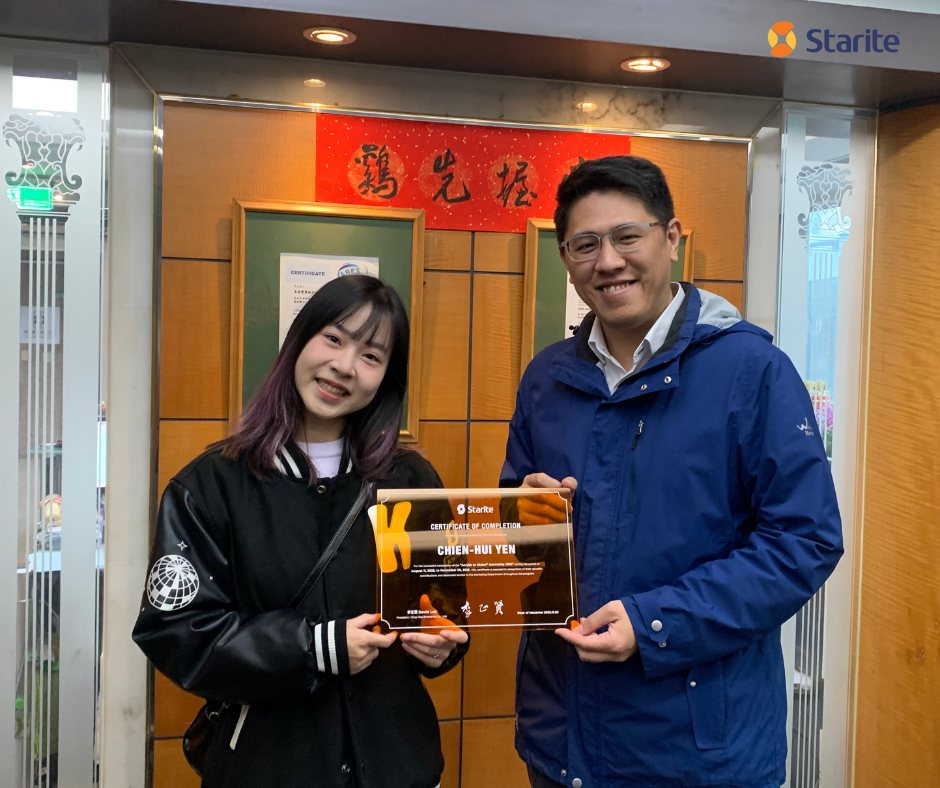 我們也很榮幸頒發首屆 Acrylic to Global 卓越獎學金 給兩位表現傑出的實習生: