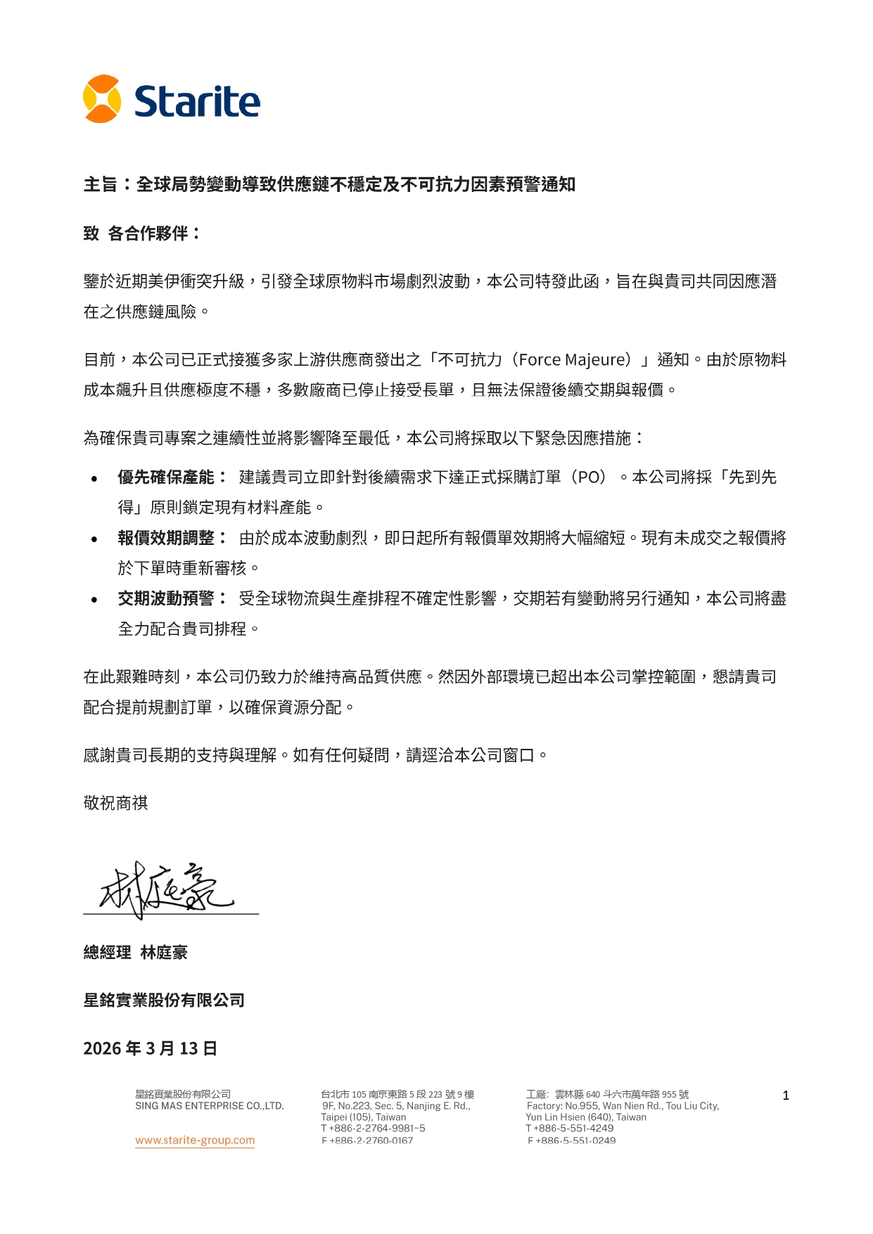 Starite 推出全球供應鏈韌性策略 攜手合作夥伴因應市場變動