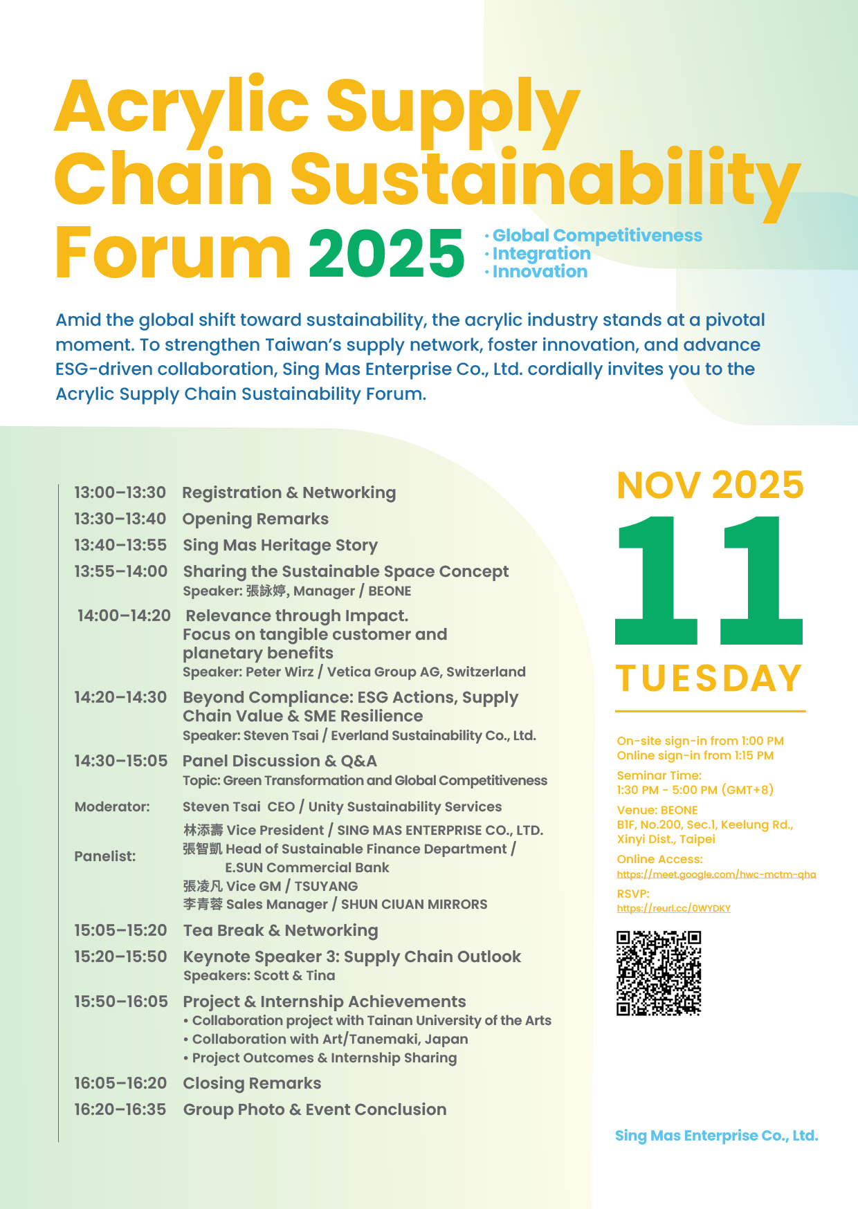 SME Acrylic sincerely invites all partners and industry leaders to join the“Acrylic Supply Chain Sustainability Forum 2025.”